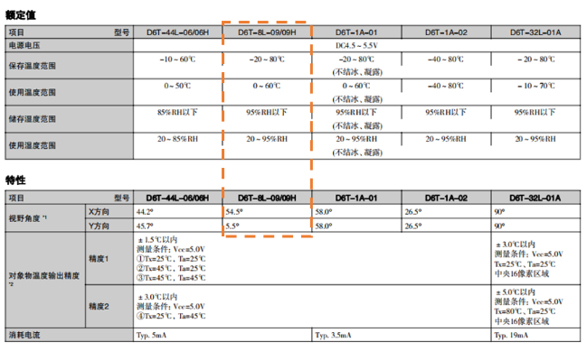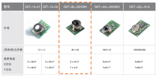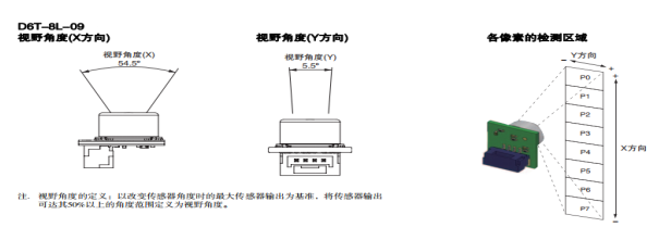 歐姆龍非接觸溫度傳感器D6T-8L-09以其紅外測檢測,I2C數(shù)字輸出,抗干擾性強三大優(yōu)勢為您的產(chǎn)品增加人體感應(yīng)功能,讓您的產(chǎn)品穩(wěn)定可靠,獨具特色。此傳感器像素為1x8,檢測區(qū)域呈長條形,橫向視場角54.5°,縱向視場角 5.5°,可根據(jù)產(chǎn)品的實際應(yīng)用進(jìn)行安裝角度調(diào)整。