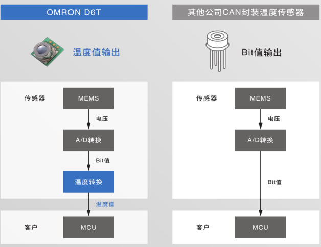 MEMS非接觸溫度傳感器采用歐姆龍自行設(shè)計的MEMS技術(shù),將熱電堆元件和ASIC封裝在一起,實(shí)現(xiàn)超小型化。
