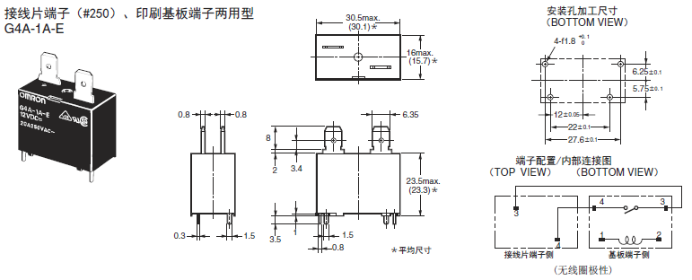 G4A 功率繼電器 實現(xiàn)通電80A、通電、切斷20A的1極小型功率繼電器 ? 實現(xiàn)通電80A、通電、切斷20A的電機負載開閉。小型卻可以實現(xiàn)高容量開閉、高耐久性。 ? 符合UL、CSA空調(diào)規(guī)格,確保絕緣距離。 ? 采用抗干擾性強的高絕緣構(gòu)造。 ? 標(biāo)準(zhǔn)品采用耐焊劑構(gòu)造。 通電80A、通電、切斷20A的1極小型功率繼電器