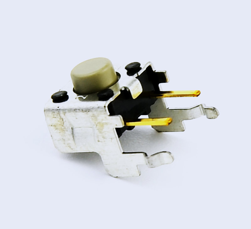 B3F 輕觸式開關 基板插入安裝型,6mm方形、12mm方形及橫向操作型、鍍金接點、徑向帶裝型等,品種齊全 ? 實現輕快的按觸感及高壽命 ? 備有可用于通用的徑向帶狀部件插入機的帶狀規格 ? 備有可以在長時間內保持穩定接觸和絕緣的鍍金型。 ? 凸型頂塊上可以安裝鍵頂(B32系列)。 B3F 基板插入安裝型,6mm方形、12mm方形及橫向操作型、鍍金接點、