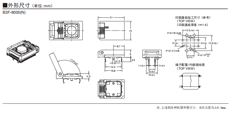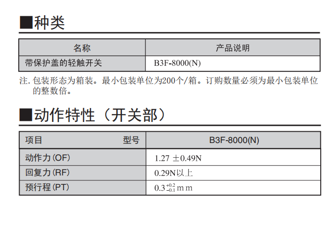 B3F-8000(N) 輕觸式開(kāi)關(guān)(帶保護(hù)蓋)