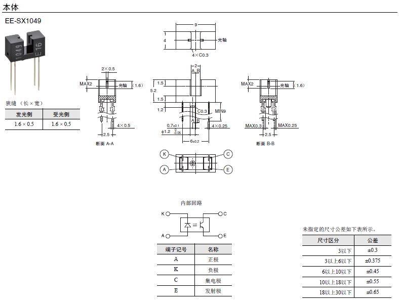 EE-SX1049微型光電傳感器