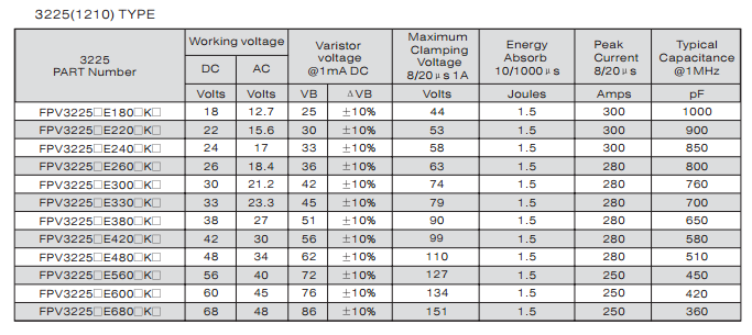 特征: 1、疊層片式陶瓷結構。 2、無引線。 3、溫度范圍:-55℃~+125 ℃。 4、工作電壓范圍V w(dc)=3.3~ 615V。 5、具有雙向限制特性,適合ESD保護。 6、漏電流非常小。 7、寄生電感小、響應速度快(響應時間少于0.5ns)。 8、優(yōu)良的溫度系數(shù)。 9、良好的焊接性能(端電極為三層電鍍)。 應用: 1、防止過電壓:當施加的電壓升高到壓敏電壓時,壓敏電阻器的電流急劇上升,被保護設備的浪涌電壓迅速減小,從而使裝有壓敏電阻器的設備抗浪涌噪聲能力達到相應要求。